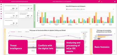 Software-definierte Fahrzeuge erfordern ein effektives Sicherheitsmanagement. Neue, internationale Vorgaben (UNECE R155, ISO/SAE 21434) geben dabei den Takt an, denn sie verlangen, dass die Cybersicherheit in allen Phasen der Entwicklung und während des gesamten Lebenszyklusses gewährt wird. Einen zentralen Teil dieser Anforderungen deckt das von T-Systems entwickelte Automotive Security Monitoring (ASM, Bild) ab.
